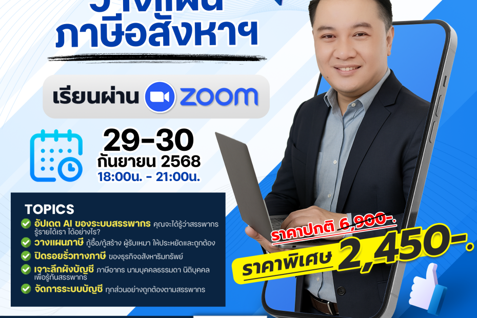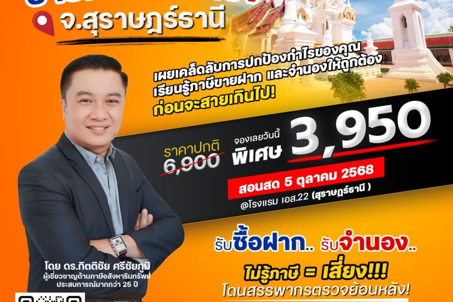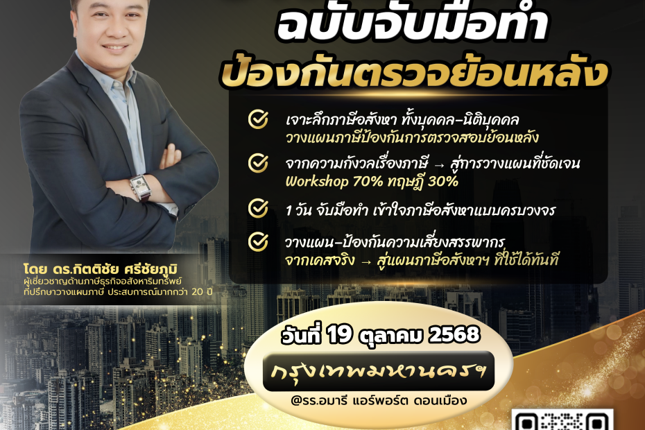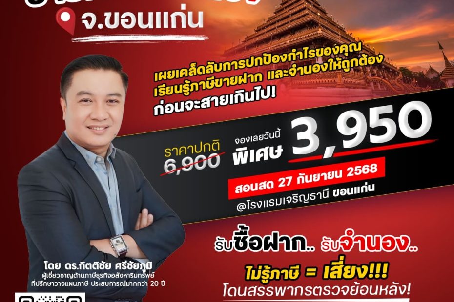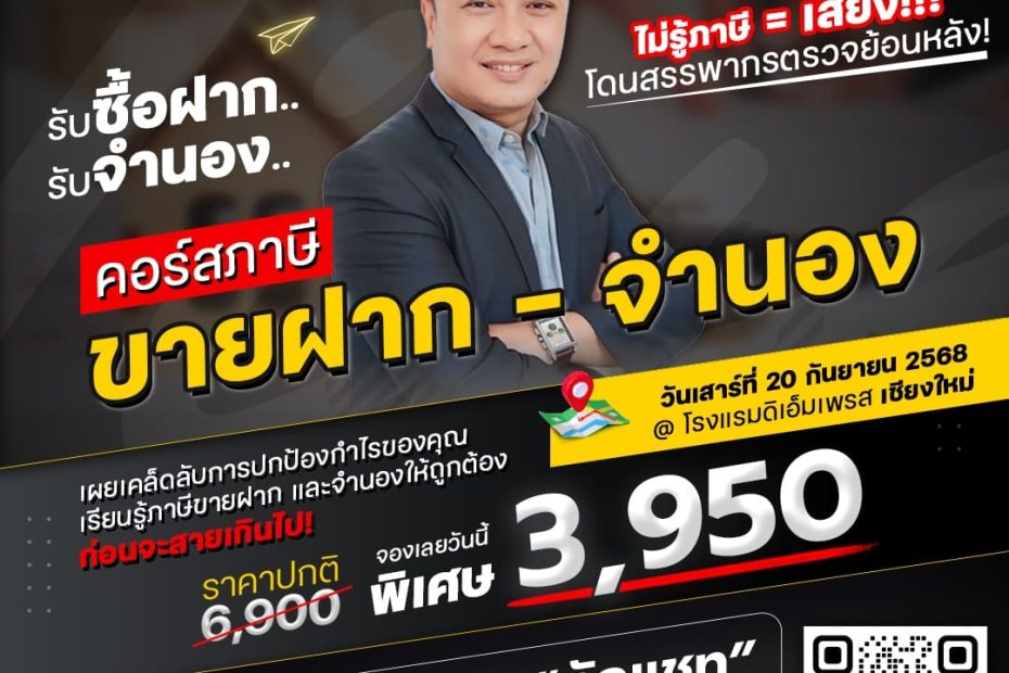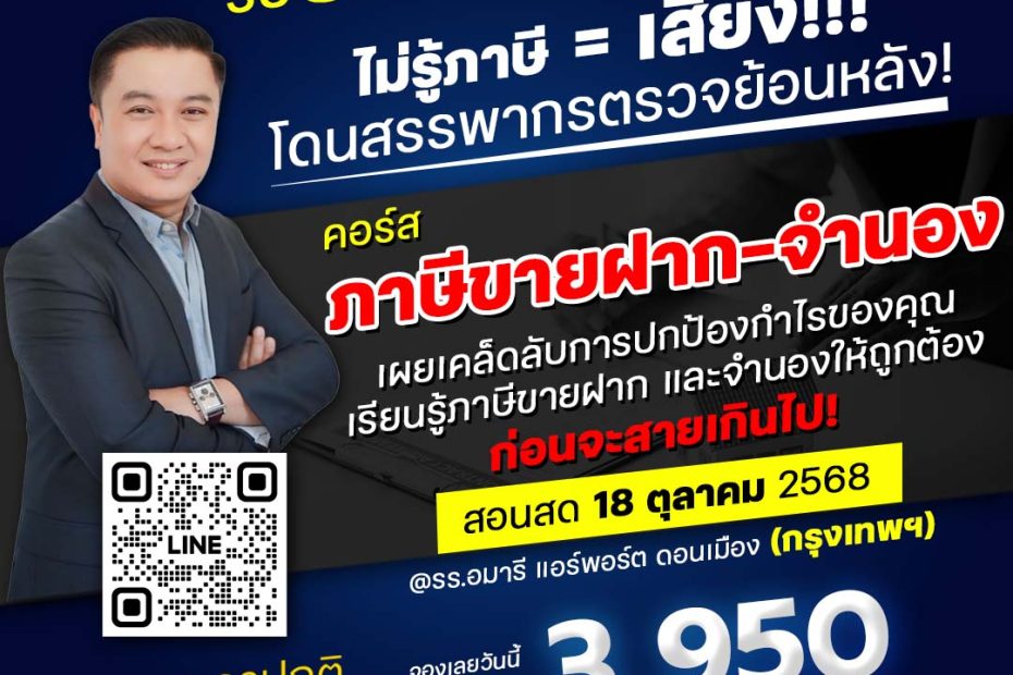 คิดว่ารับซื้อฝาก–รับจำนอง แค่ทำสัญญาแล้วจบ? ระวังให้ดี… กรมสรรพากร “เรียกตรวจย้อนหลังได้ 5-10 ปี” ลองคิดภาพตาม… เงินก้อนที่คุณดีใจว่าเป็น “กำไร” อาจถูกตีความเป็น “หนี้ภาษี” พร้อมเบี้ยปรับสูงสุด 2 เท่า + เงินเพิ่ม 1.5% ต่อเดือน ที่มาของปัญหา เพราะหลายคน “ไม่รู้” ว่าการขายฝาก–จำนองเกี่ยวข้องกับภาษีหลายประเภท เช่น • ดอกเบี้ย / ค่าตอบแทน → เงินได้… Read More »คอร์สภาษีขายฝาก-จำนอง 20/9/68